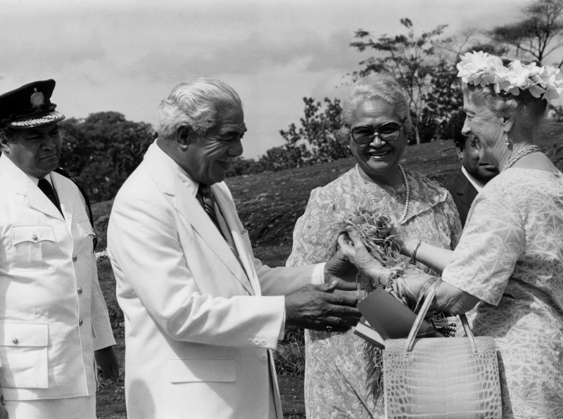 Ruhiyyih Khanum greeted by His Highness Susuga Malietoa Tanumafili II, and his wife, Masiofo Lili Tuni